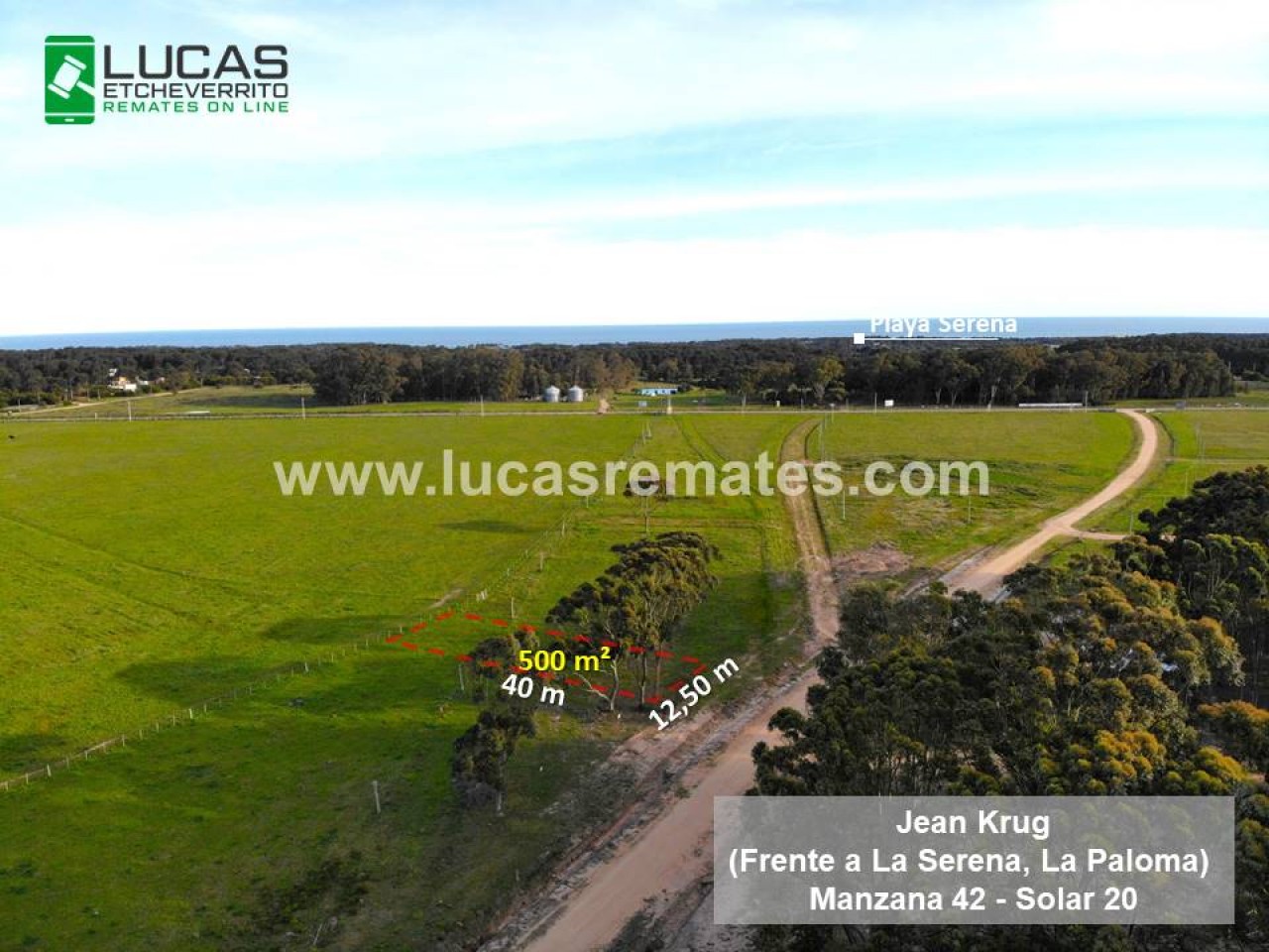 Muy buen terreno de 500 m2 a 5 minutos del Balneario La Paloma, Playa Serena y Laguna de Rocha. Se encuentra limpio, nivelado, amojonado por agrimesor y con toda la contribución año 2025 pagada.