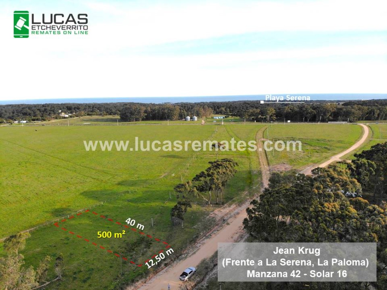 Muy buen terreno de 500 m2 a 5 minutos del Balneario La Paloma, Playa Serena y Laguna de Rocha. Se encuentra limpio, nivelado, amojonado por agrimesor y con toda la contribución año 2025 pagada.