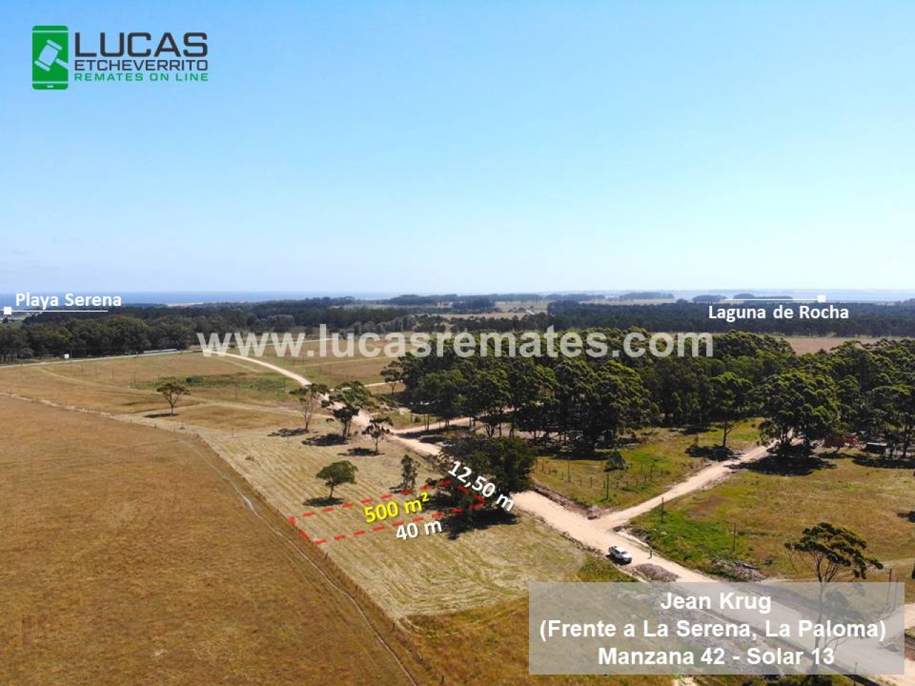 Muy buen terreno de 500 m2 a 5 minutos del Balneario La Paloma, Playa Serena y Laguna de Rocha. Se encuentra limpio, arbolado, amojonado por agrimesor y con toda la contribución año 2026 pagada.