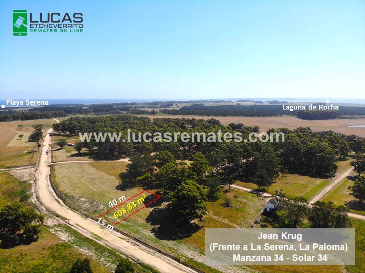Buen terreno de 608,83 m2 a 5 minutos del Balneario La Paloma, Playa Serena y Laguna de Rocha. Se encuentra limpio, amojonado por agrimesor y con toda la contribución año 2026 pagada. Observaciones: Cuenta con una pendiente.