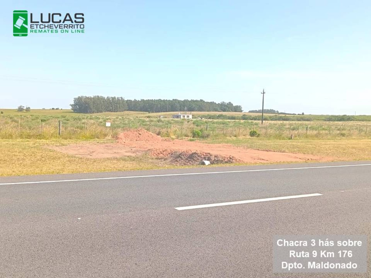 Muy buena chacra de 3,3429 hectáreas en el departamento de Maldonado, zona de Garzón sobre Ruta 9 en el kilómetro 176. Se encuentra ubicada a 30 kilómetros de José Ignacio. 82,33 metros sobre Ruta 9. Se entrega alambrada.