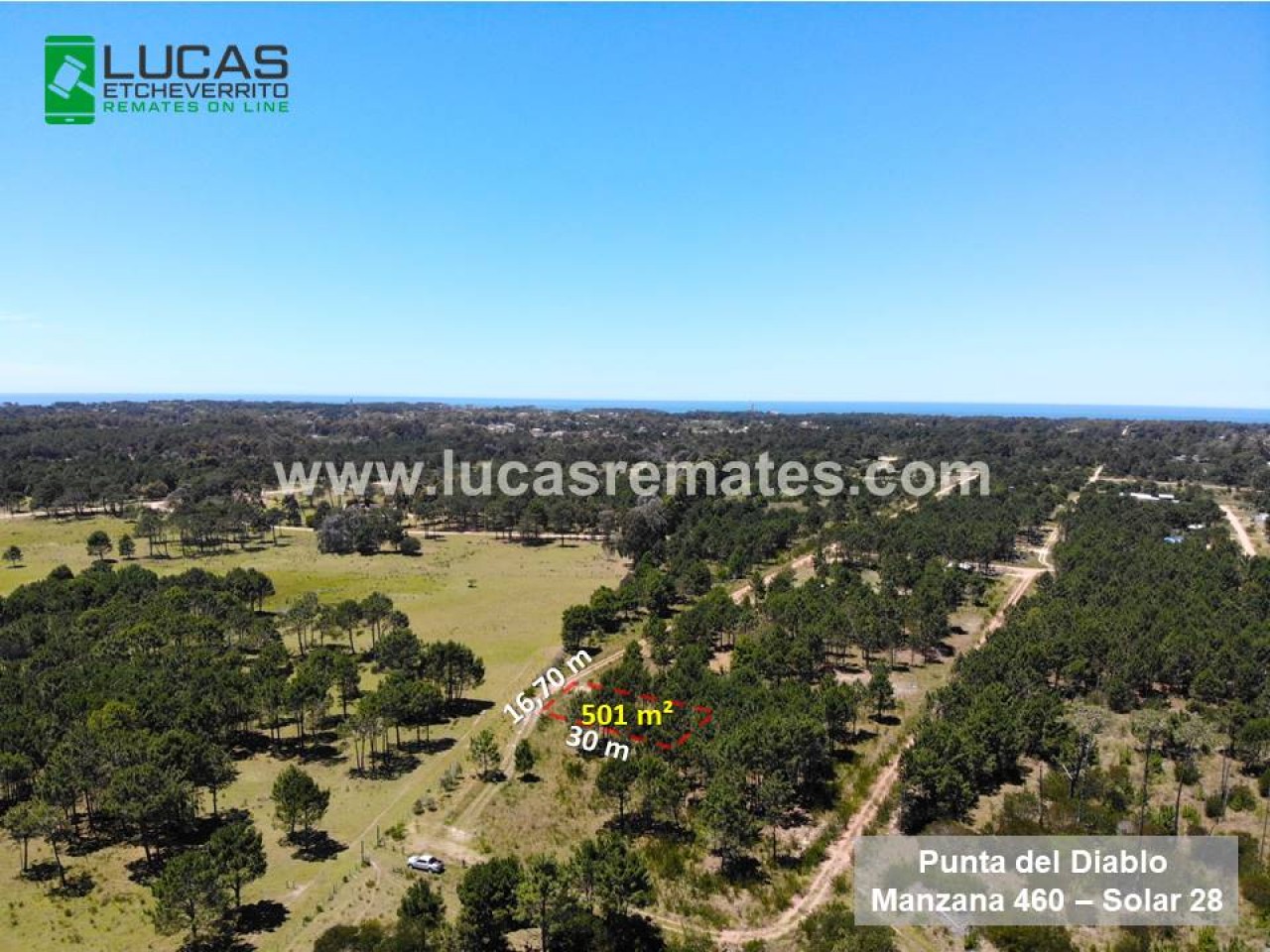 Buen Terreno de 501 m2 en Punta del Diablo. Se encuentra limipio, nivelado, arbolado, amojonado por agrimensor y con contribución al día.