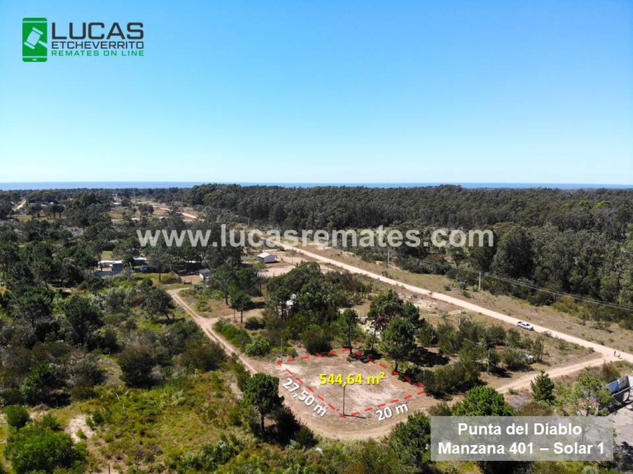 Superficie: 544,64 m2 esquinero (20 m de frente por 26,50 m de fondo).